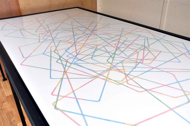 Ink and Pencil drawing on paper, market stall table. Dims 240 x 120 cms