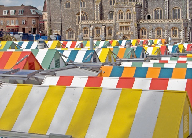 A drawing was displayed on a stall table within a booth at Norwich Market.
