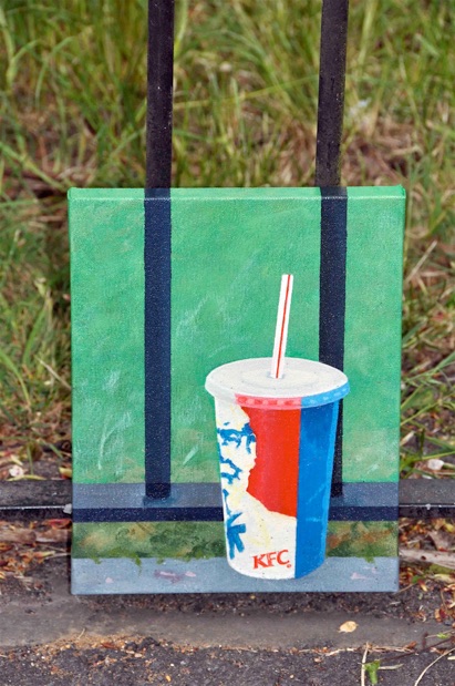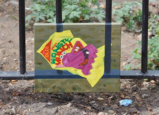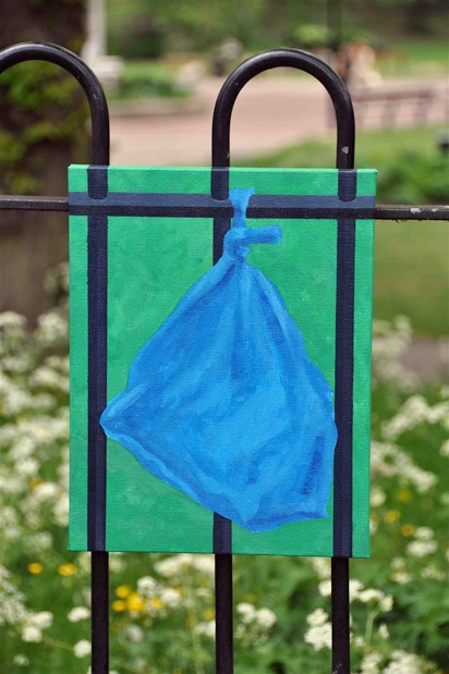 Paintings of rubbish were attached at various locations to the railings of Chapelfield Gardens.