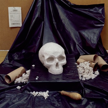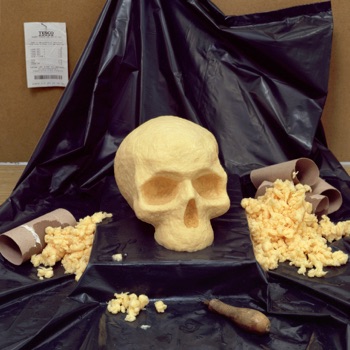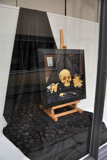 Two photographs were displayed in two bay windows in the old town. The skull in one is made from a Luxury 4-pack of toilet roll, and in the other from a Value 4-pack.
